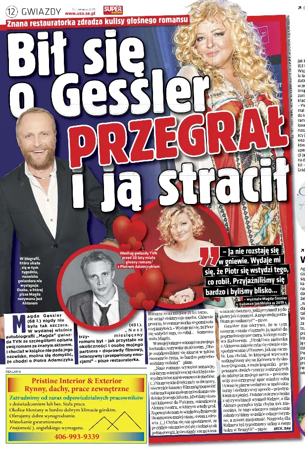 Magda gessler o romansie z piotrem adamczykiem.
